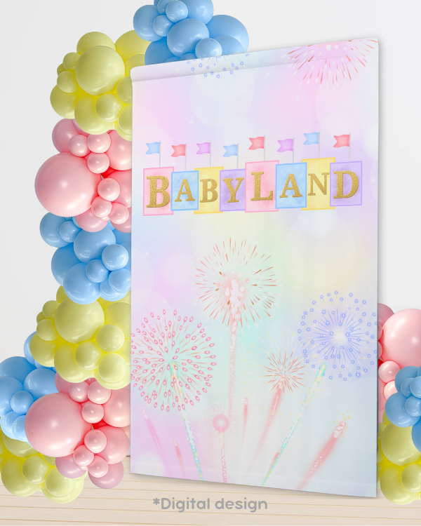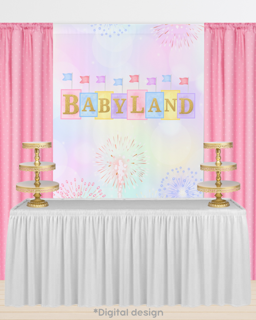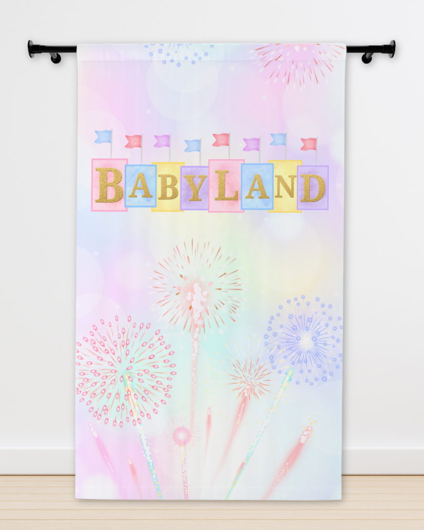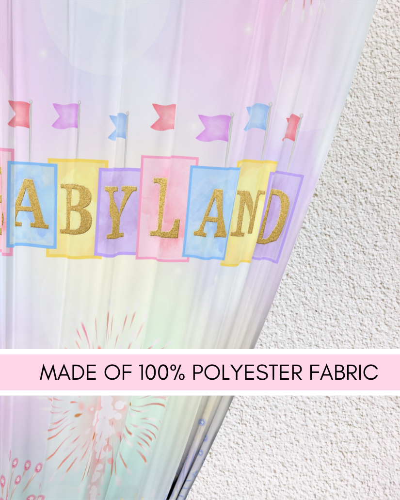 Take your party decor to the next level with this beautiful and easy to use 'Babyland' themed backdrop curtain.
