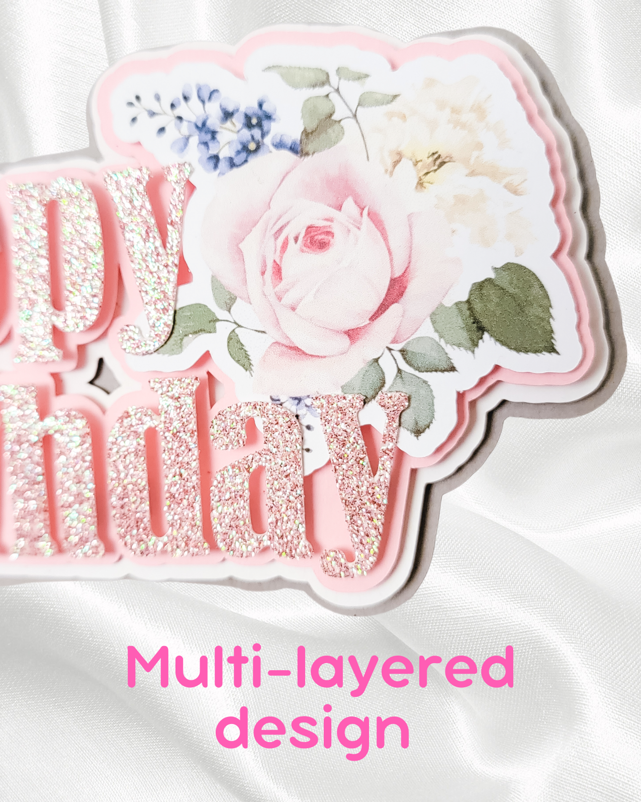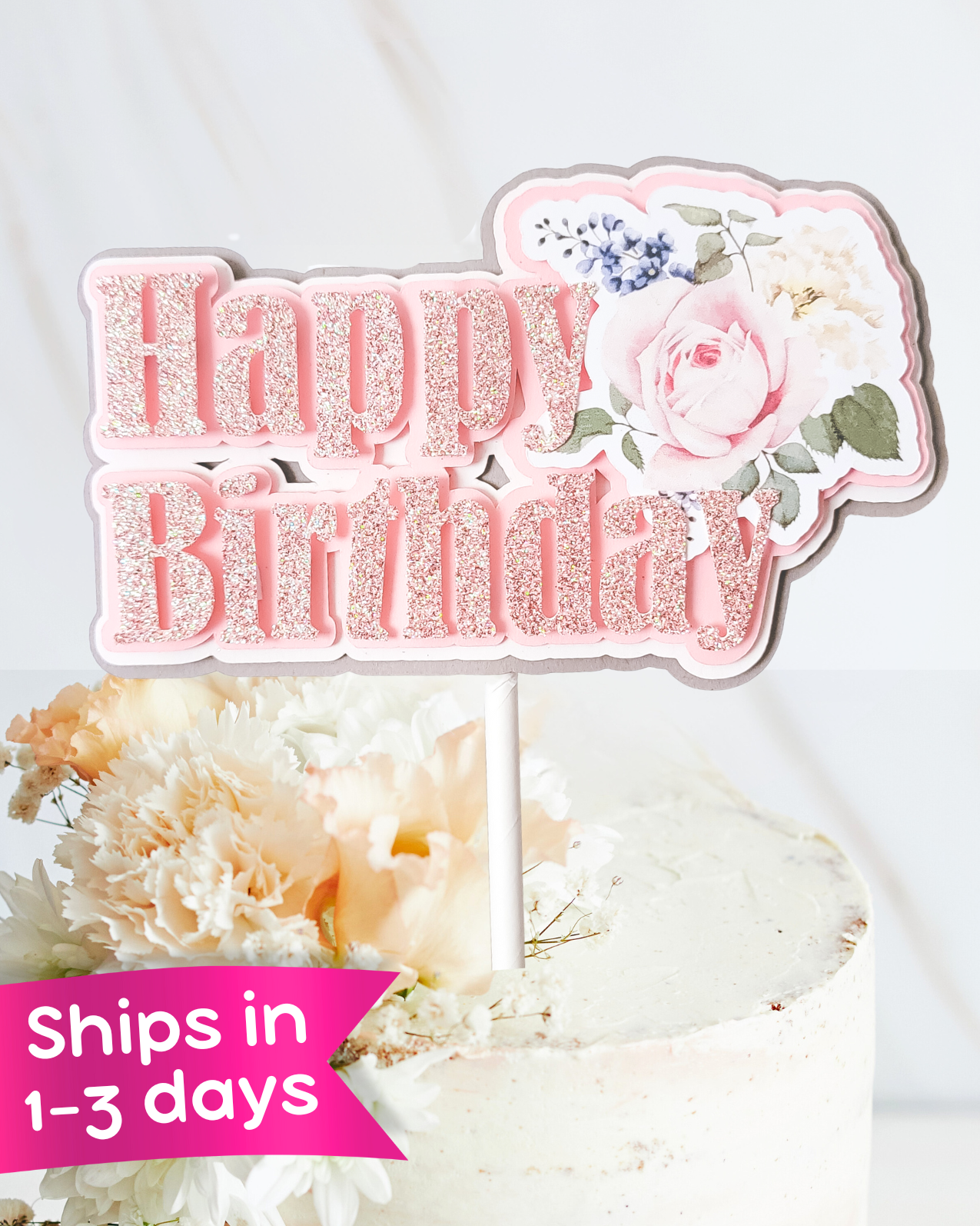 Add an extra sparkle to your special day with this handmade blush rose "Happy Birthday" Cake Topper. The gorgeous glitter details make it stand out from the rest. Make it a birthday to remember!