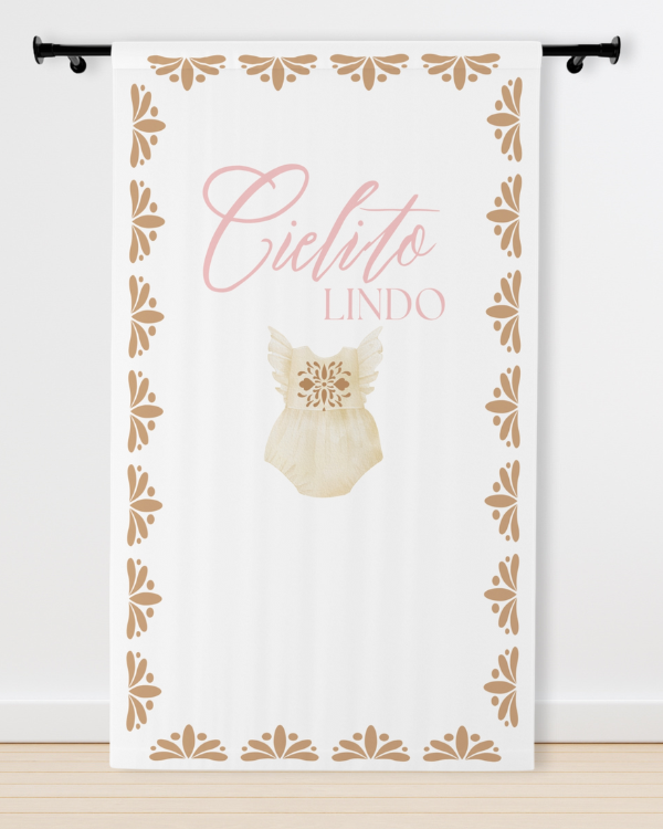 Add a touch of heritage with this beautiful and easy to use 'Cielito Lindo' themed backdrop curtain.