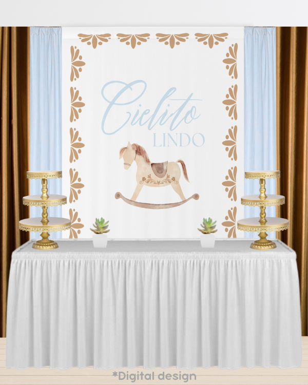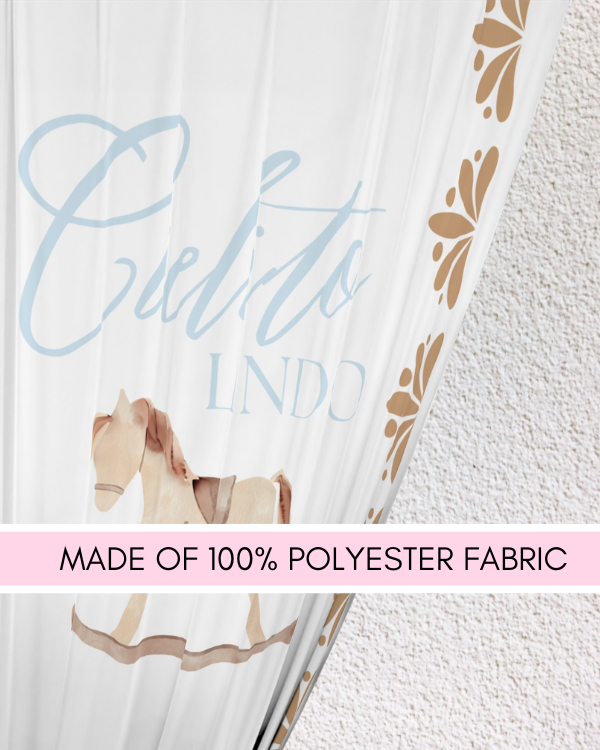 Perfect for baby showers and Mexican inspired parties. Featuring a beautiful caballito (rocking horse) for a sweet touch of baby nostalgia. Simply hang it on your backdrop stand or attach it to the wall. Use it as a photo backdrop or decorate with balloons for a fun and practical backdrop that your guests will love. It's made of fabric which makes it machine washable, reusable, and easy to use. These backdrop curtains are a must-have for any celebration.