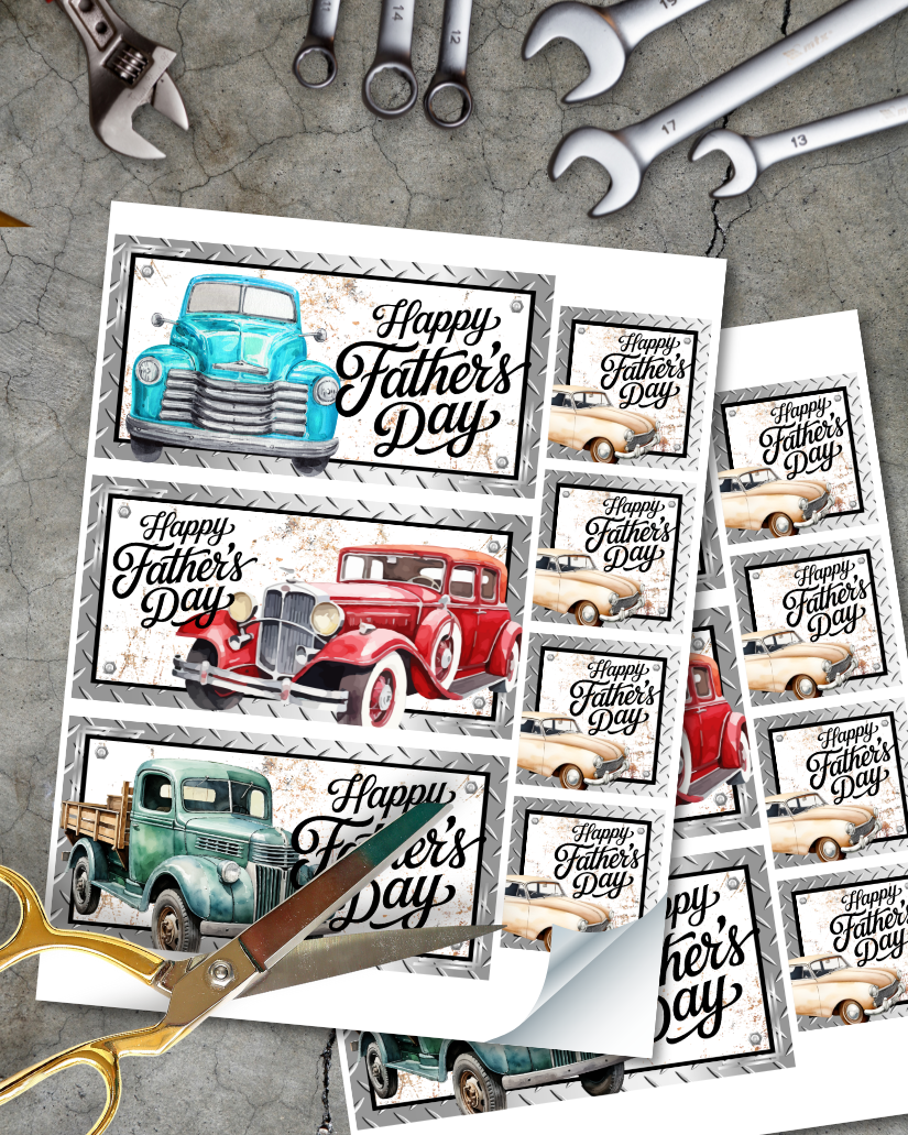 The best part? It's an instant digital download – grab the file now and start creating memorable Father's Day touches right away! No shipping delays, just vintage automobile charm ready whenever you are!