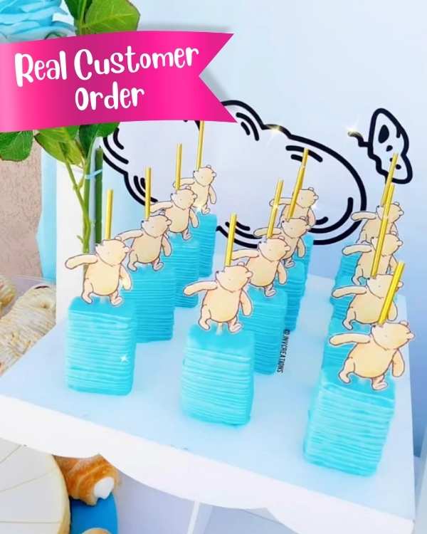 2. Include a "note to seller" at checkout with your theme or character. (If you have a specific photo you would like us to use in your design, please state this in the notes at checkout and email your high resolution photo in PNG or JPG to jnv.creations@yahoo.com along with your name and order number)