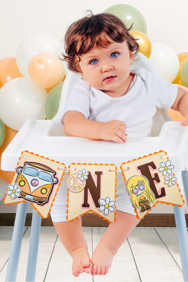 Make your baby's first birthday an unforgettable celebration with this Groovy One Highchair Banner!
