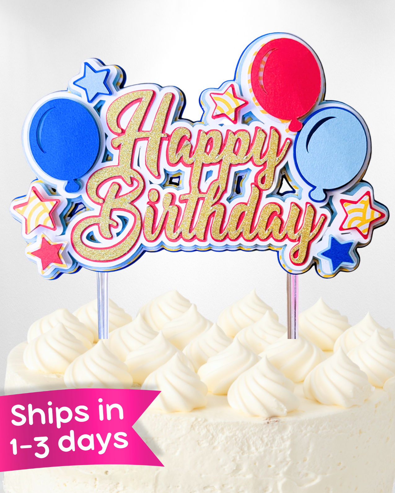 Welcome in the festivities with a bright and cheerful “Happy Birthday” cake topper! This primary-colored masterpiece is handmade with love and features a variety of celebratory balloons, making it the perfect way to express your birthday wishes. Celebrate in style and make your special day a colorful one!