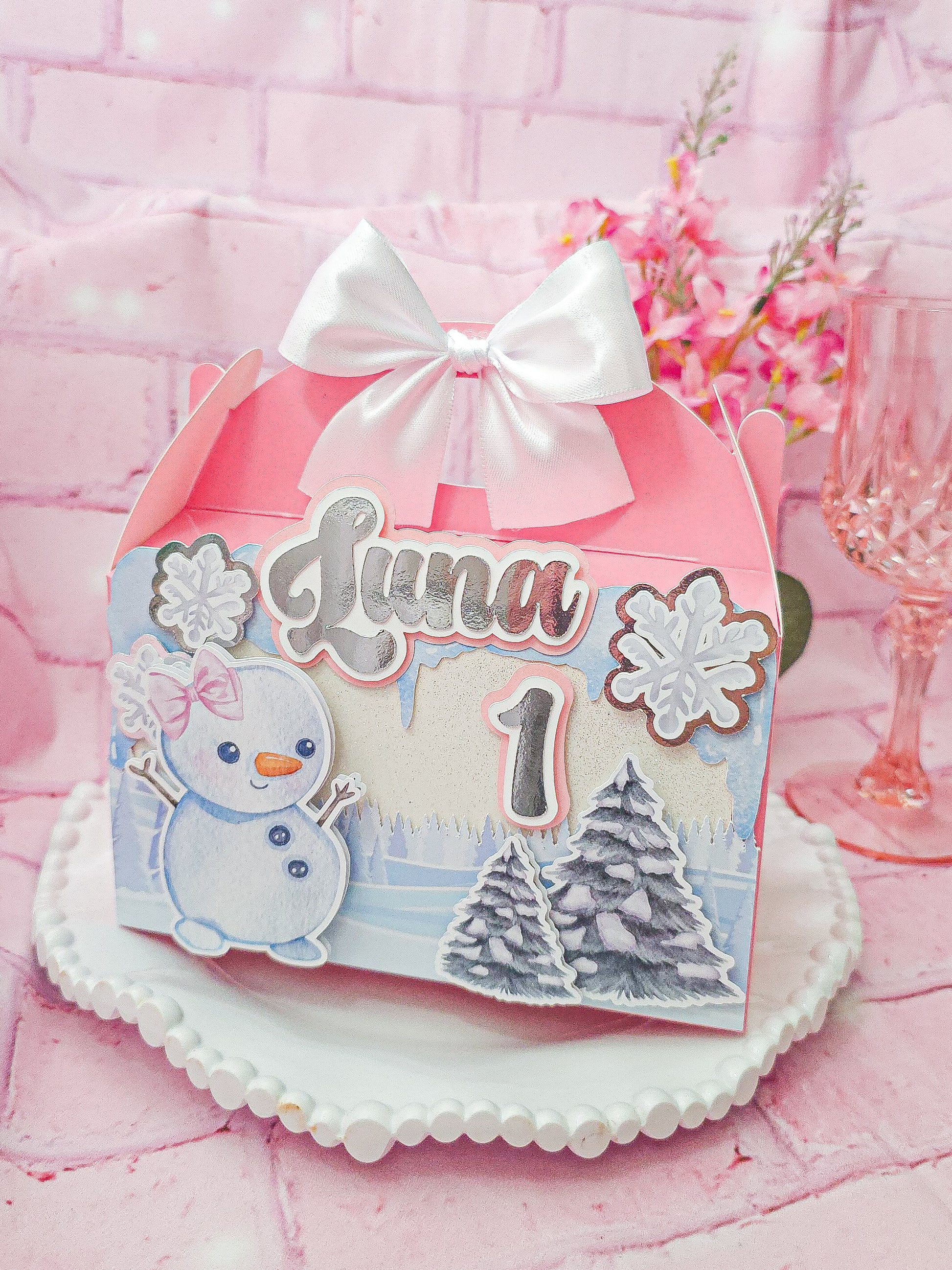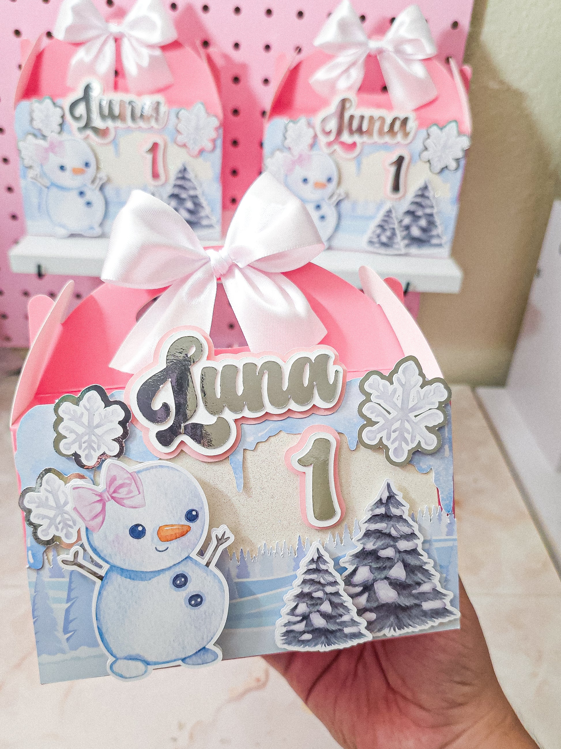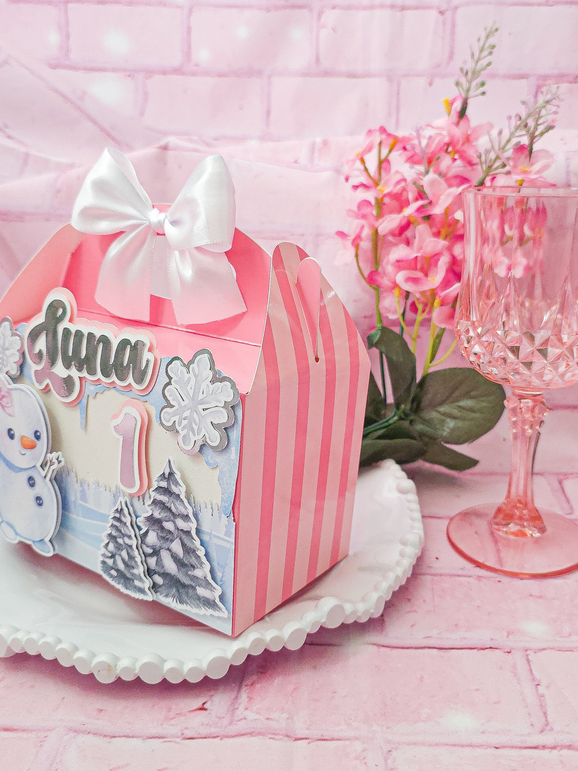 Elevate your winter birthday party with these Pink Winter Wonderland Favor Boxes!