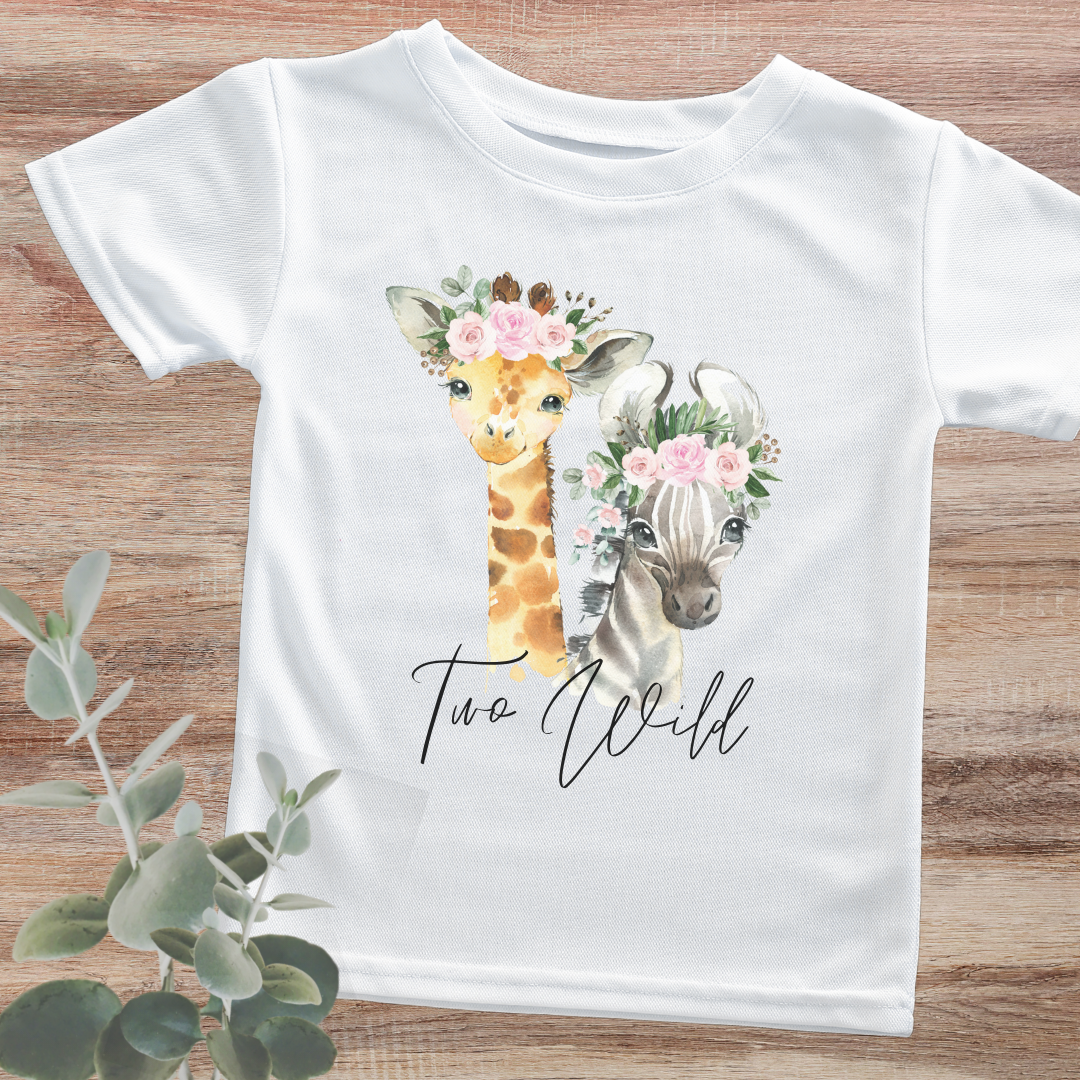 'Two Wild' Floral Safari Kids Birthday Shirt